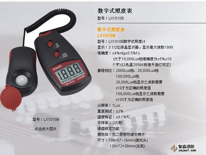 數字照度計量程不小于2000lx;精度:±5%測量消防應急照明設施的照度值是否符合規范要求