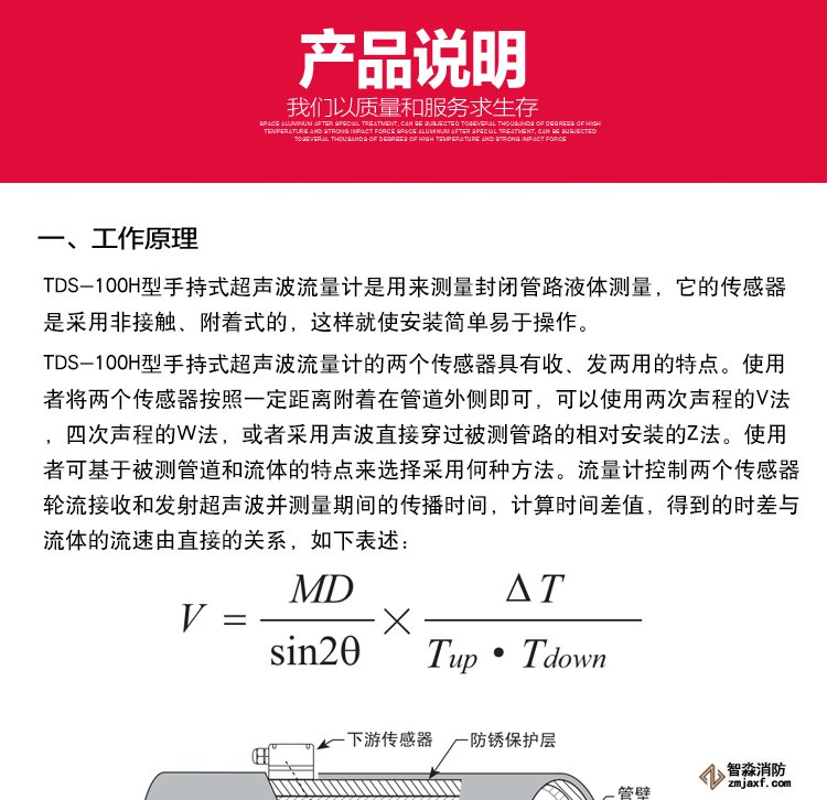 手持式超聲波流量計。其測量管徑在0-700mm,精度±1%。