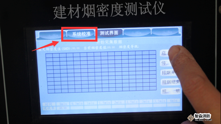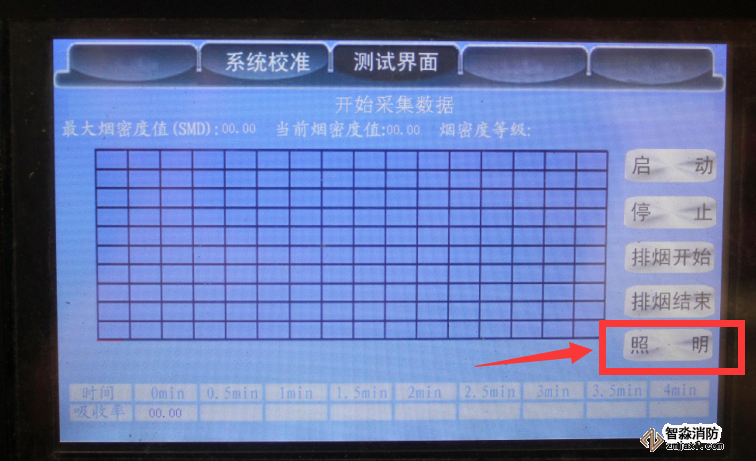 8.6試驗結束后,點擊排煙,然后將排煙閘片向里推進,將煙箱內的煙排出,煙霧排凈后點擊結束排煙,將排煙閘片向外拉出關閉煙道。