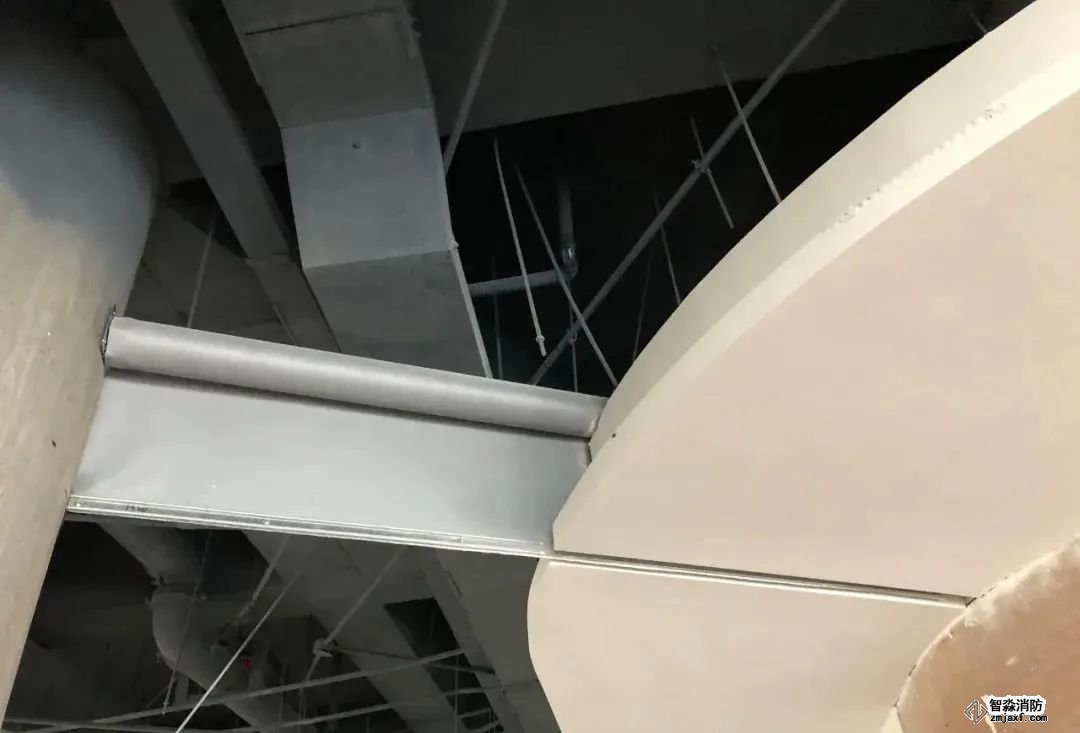 先在梁底設置一定高度的密封固定措施,供機電管線穿過,再將擋煙垂壁安裝在固定設施下方