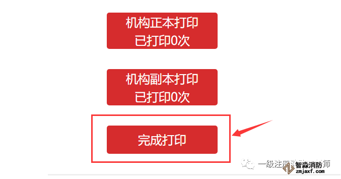如下圖所示,在打印正本和副本之后,需點擊《完成打印》按鈕,登記發放中才會顯示該條記錄