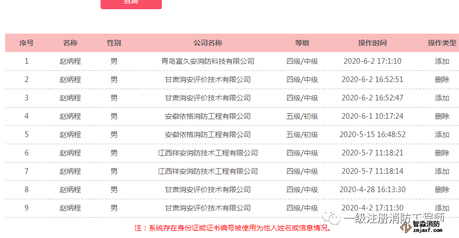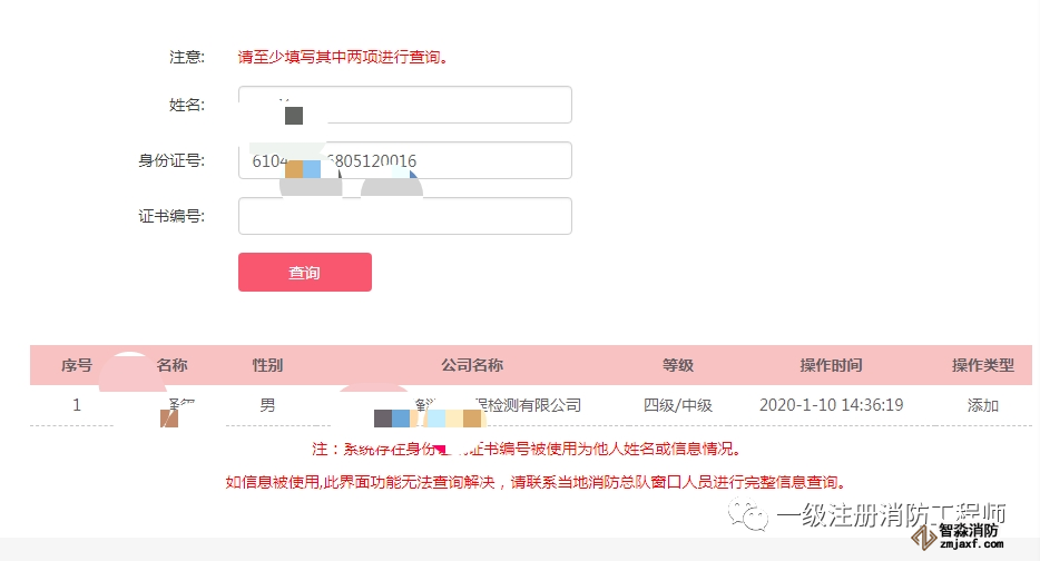 如信息被使用,此界面功能無法查詢解決,請聯系當地消防總隊窗口人員進行完整信息查詢。