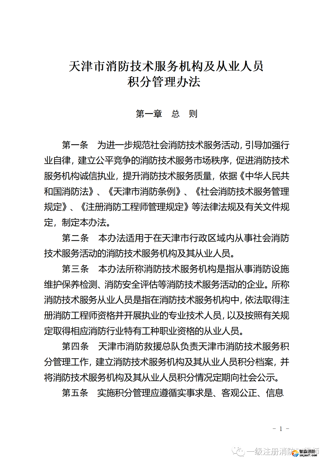 天津總隊:《消防技術(shù)服務機構(gòu)及從業(yè)人員積分管理辦法》的通知