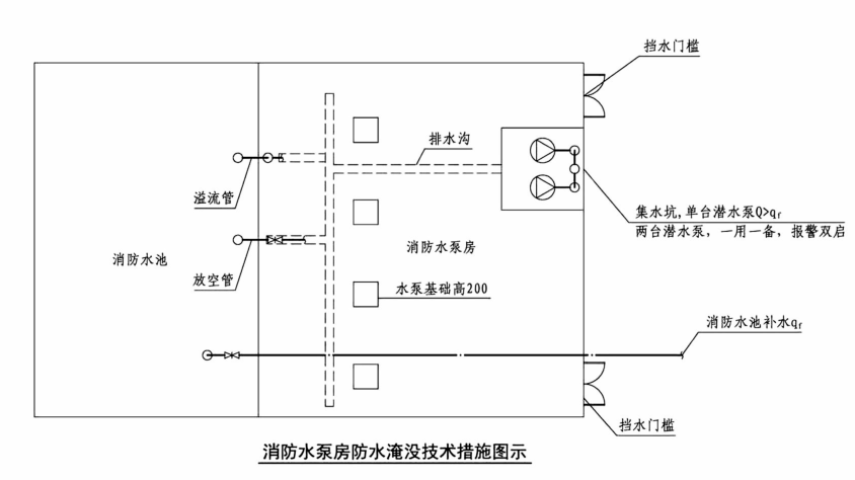 該區(qū)域發(fā)生積水倒灌的風(fēng)險(xiǎn)遠(yuǎn)高于淺層地下空間,火災(zāi)時(shí)樓內(nèi)滅火需大量用水,一旦排水系統(tǒng)失效,水泵房易被浸泡,直接導(dǎo)致消防水泵無(wú)法啟動(dòng),喪失滅火供水能力。規(guī)范圖集中要求設(shè)壓力排水和擋水門檻,就是為了減少水淹風(fēng)險(xiǎn)。
