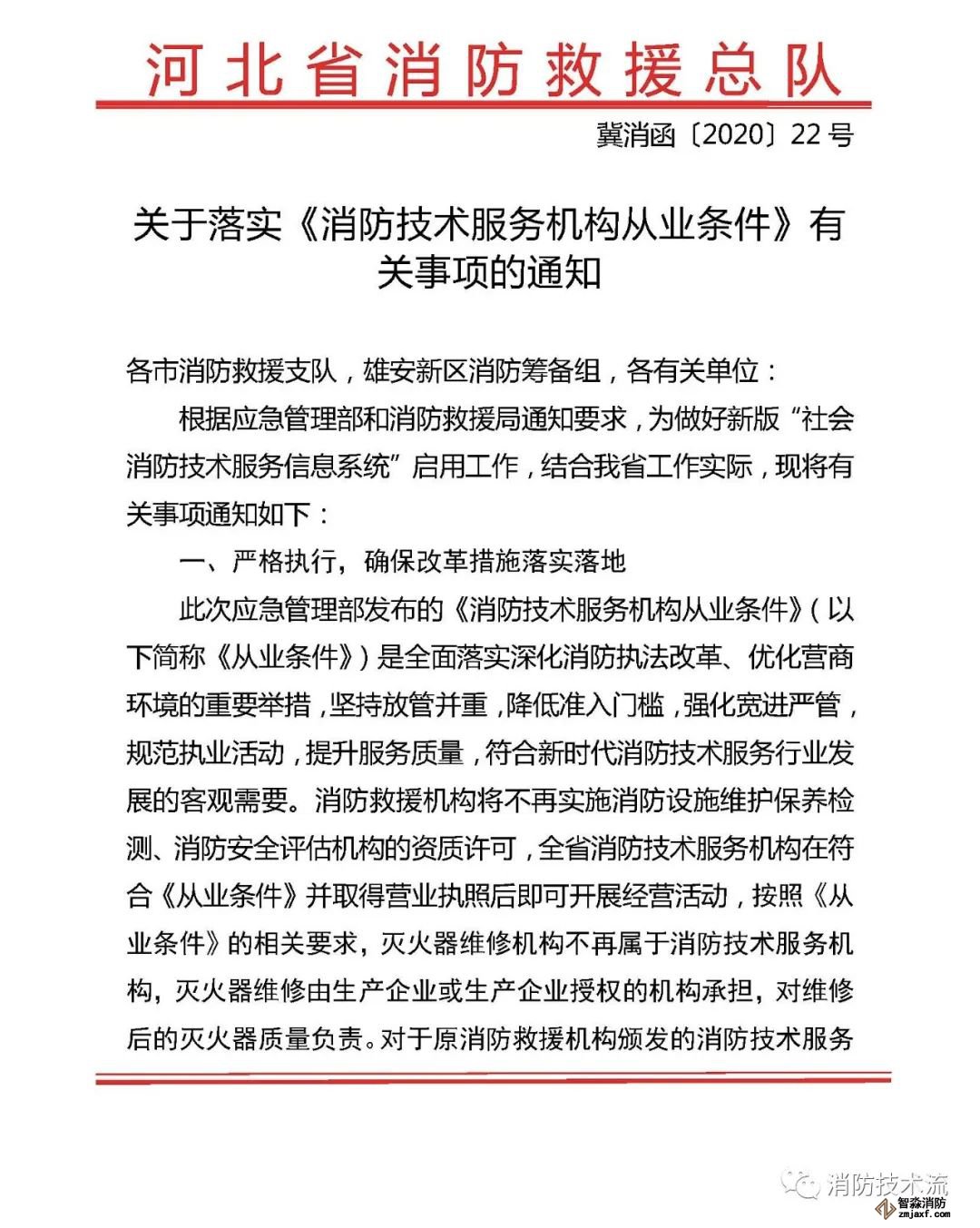 河北省《消防技術服務機構從業條件》已經實施有一段時間,目前全國社會消防技術服務機構都必須遵從《從業條件》的規定,但《從業條件》與早幾年發布的《社會消防技術服務管理規定》(公安部令第129號)內容不一致,甚至大相徑庭,因此《社會消防技術服務管理規定》需要修改是無可避免的。根據河北省消防救援總隊關于落實《消防技術服務機構從業條件》有關事項的通知,目前消防救援局已經啟動《社會消防技術服務管理規定》修改工作,靜待其正式發布。