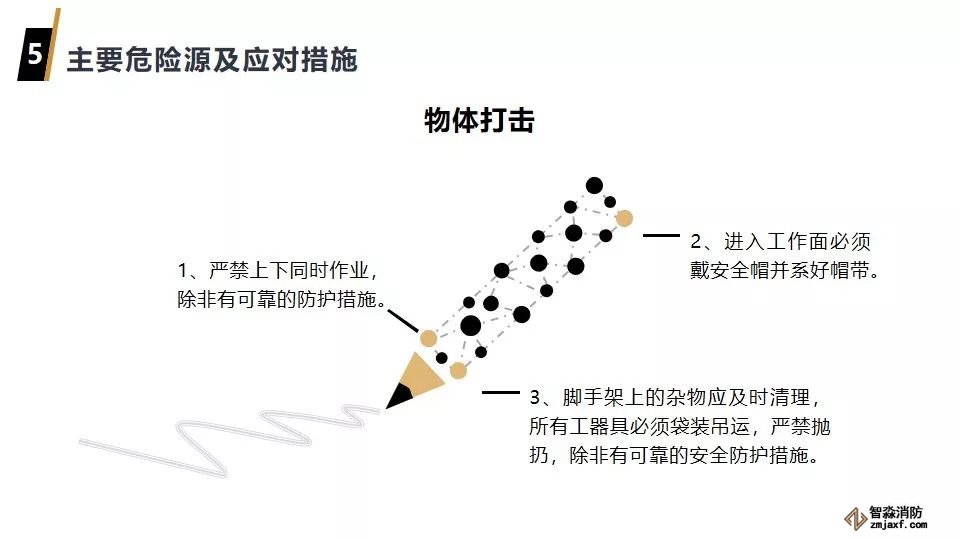 4、作業平臺搭設必須符合規定,牢固可靠,平臺下2m范圍不得堆放物料;作業時,平臺下方嚴禁行人穿過。