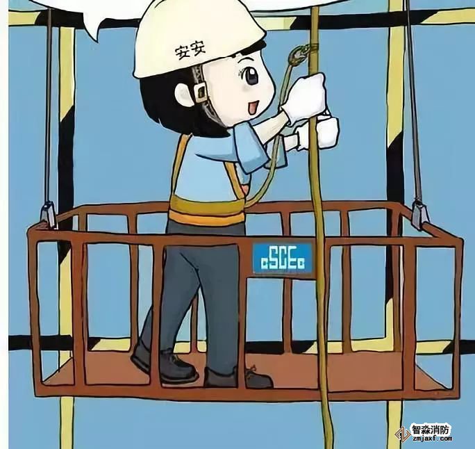 提醒:在吊籃內的作業人員應佩戴安全帽、系安全帶。作業人員應將安全帶掛設在安全繩上,安全繩不得與吊籃有任何連接。對不使用安全帶的工人,安全員和作業負責人應及時提醒其正確使用,否則,不得在吊籃內作業。