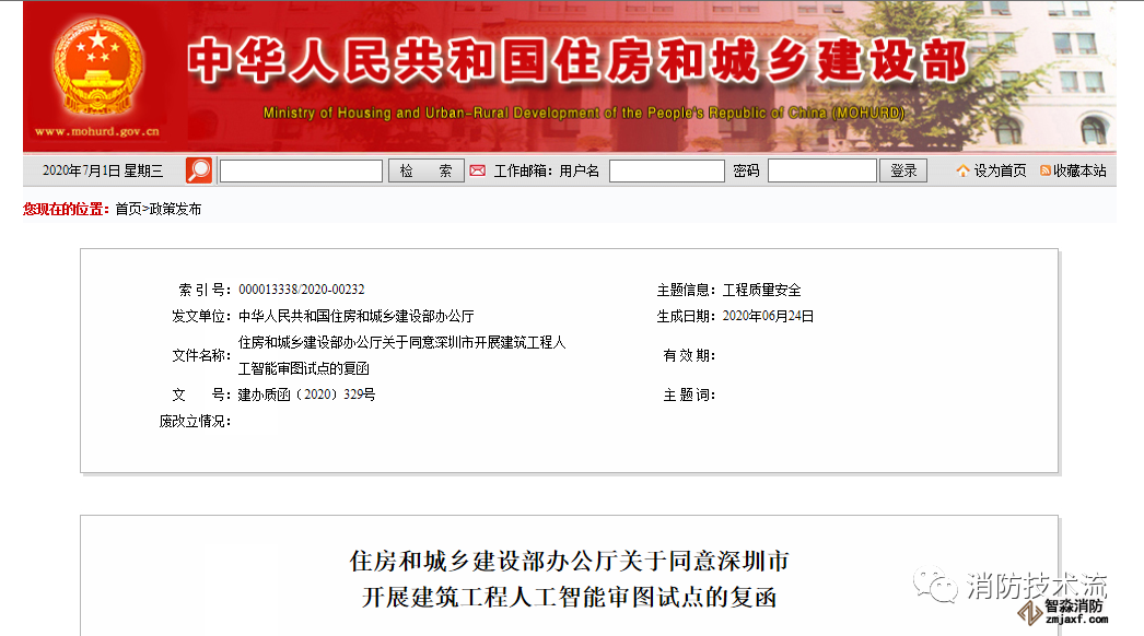 《關于開展建筑工程人工智能審圖試點工作的請示》(深建字﹝2020﹞114號)收悉。經研究,現(xiàn)函復如下。
