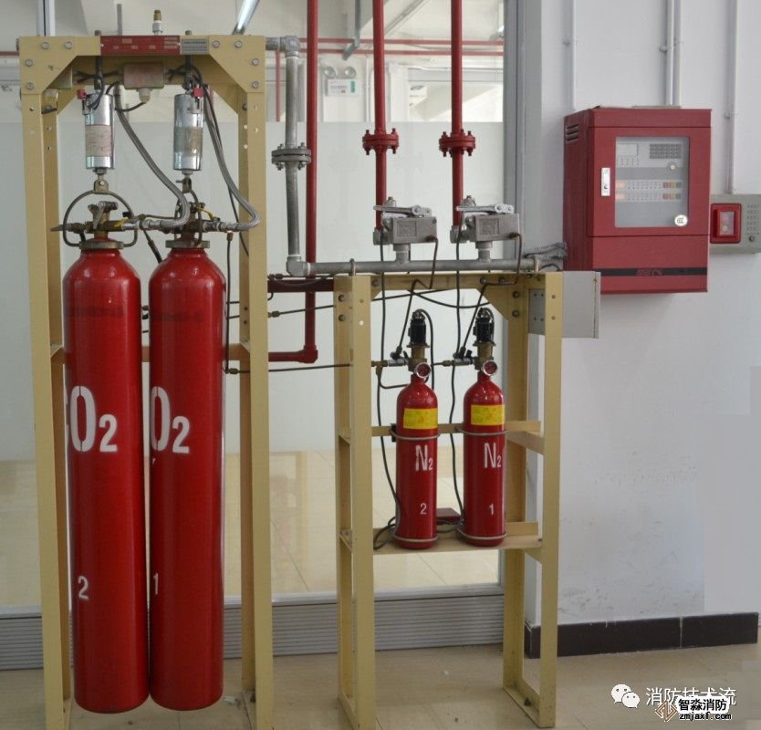 混合氣體IG-541滅火劑,是一種既不支持燃燒又不與絕大部分物質(zhì)發(fā)生反應(yīng)的氣體,其本身來源豐富,可從空氣中制取。它是以物理方式進(jìn)行滅火的,即通過減少火災(zāi)燃燒區(qū)域空氣中的氧含量而達(dá)到滅火效果。