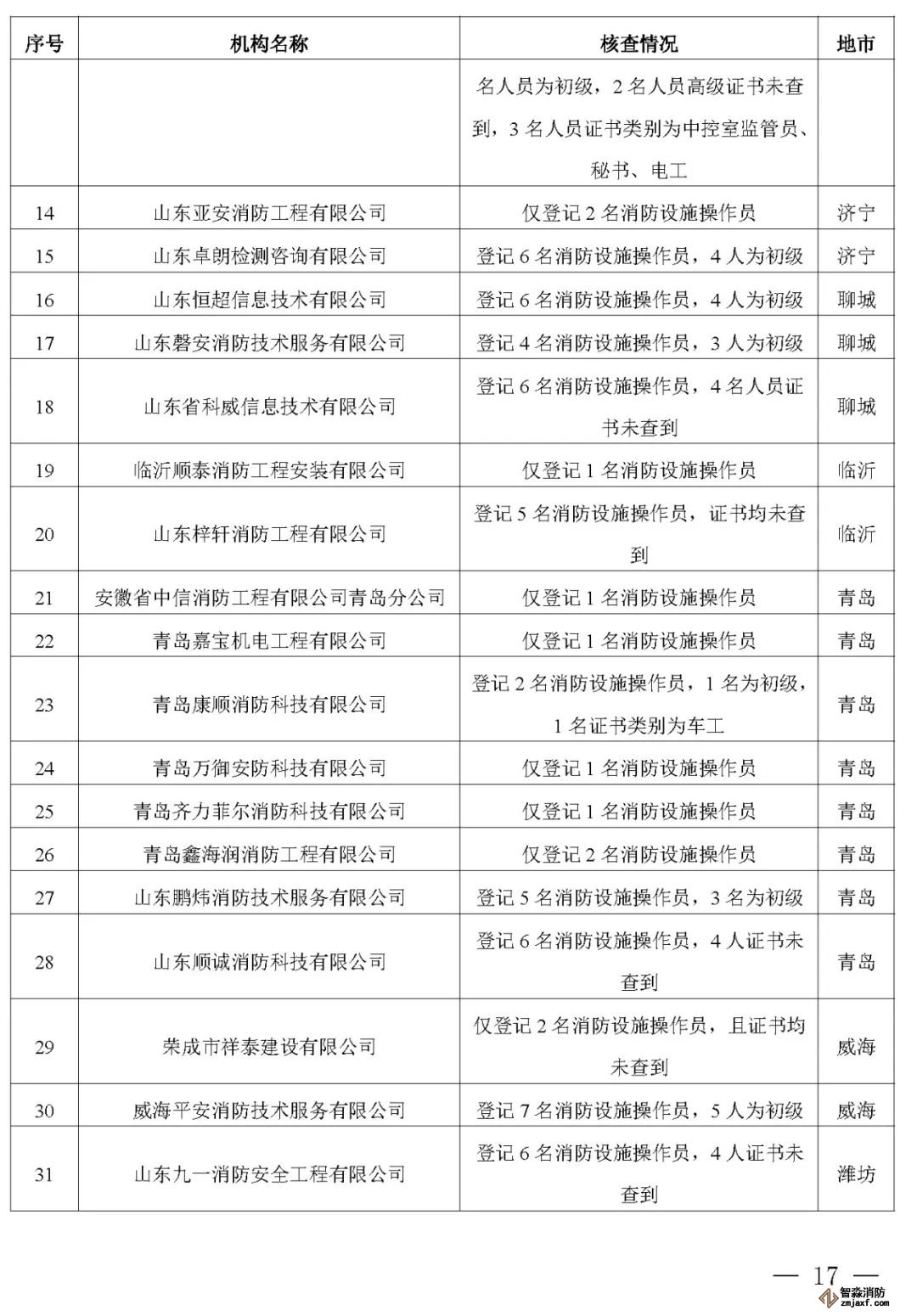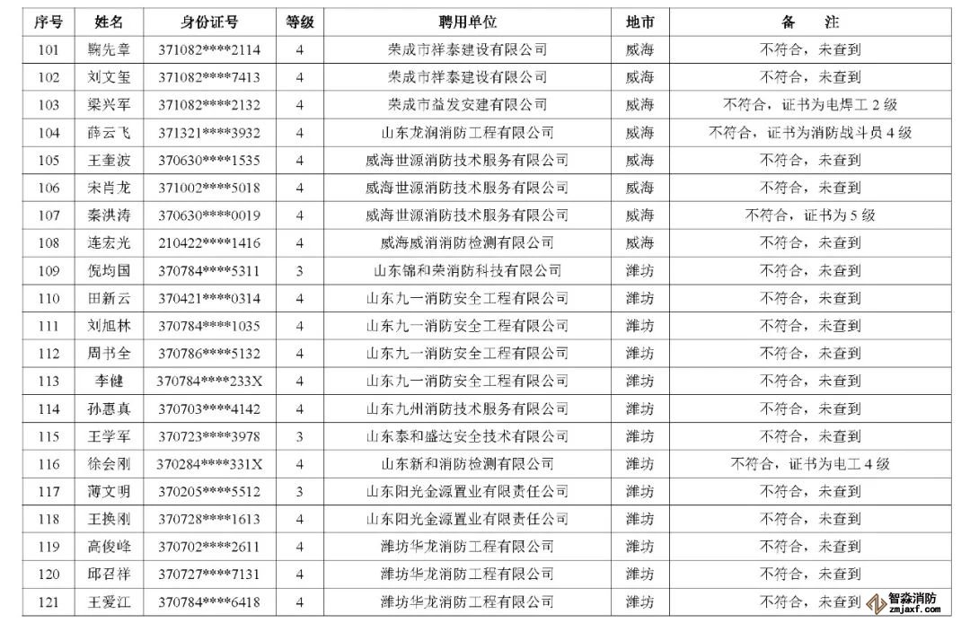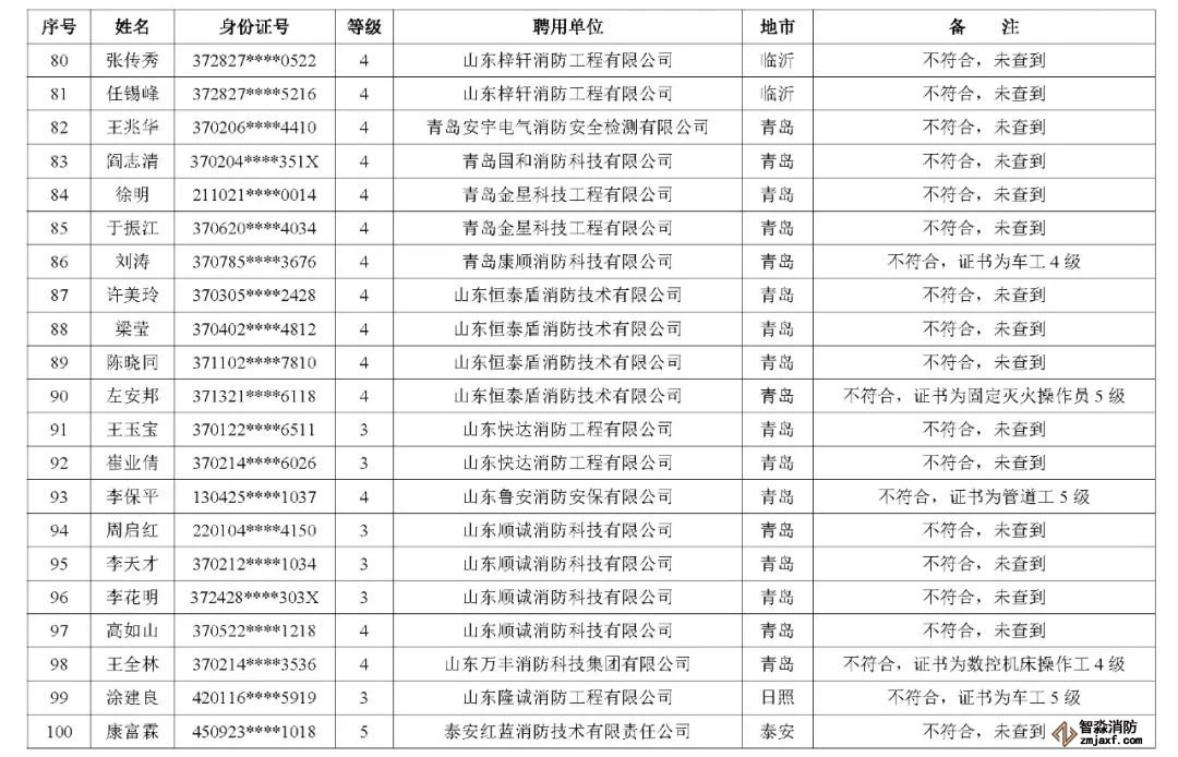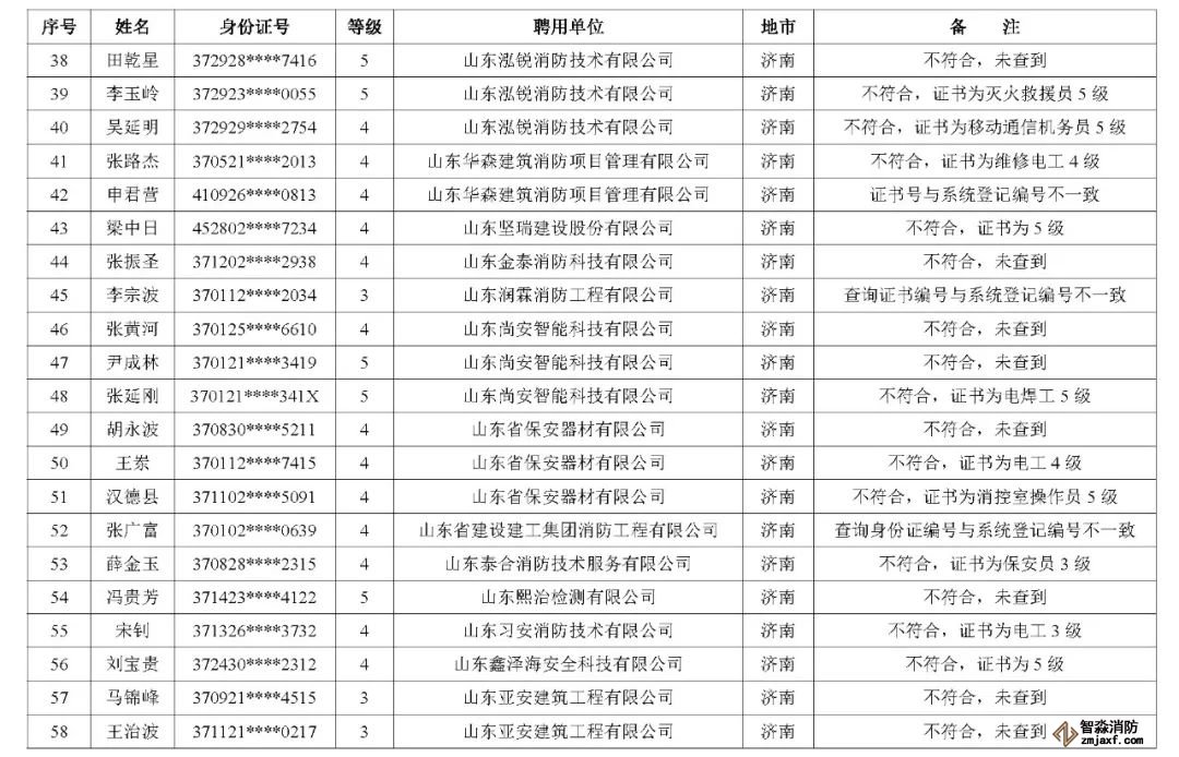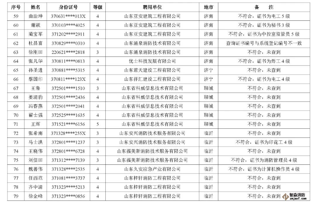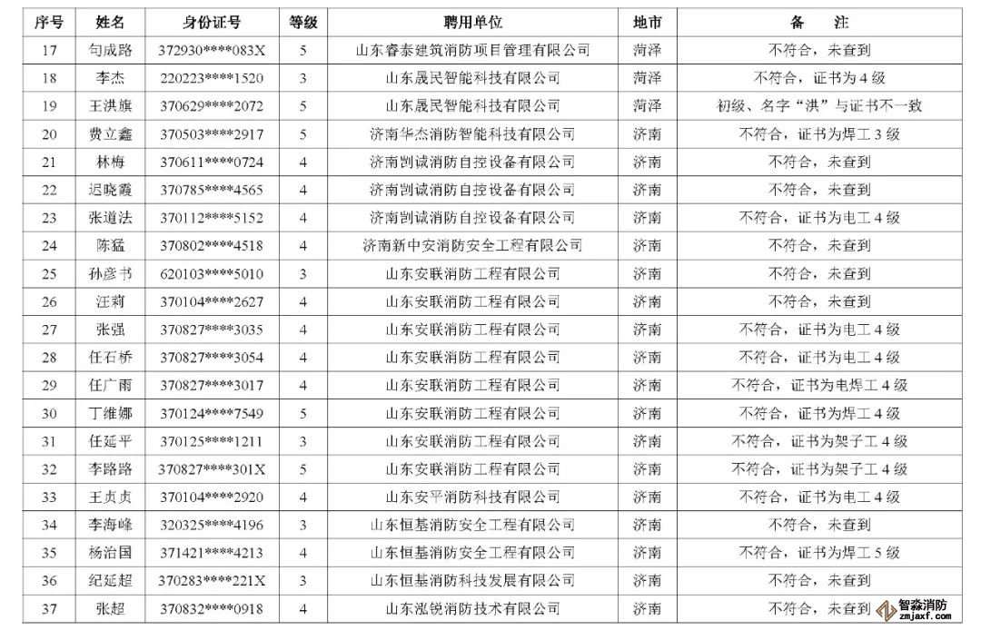 山東:消防技術(shù)服務機構(gòu)從業(yè)人員資格核查情況通報