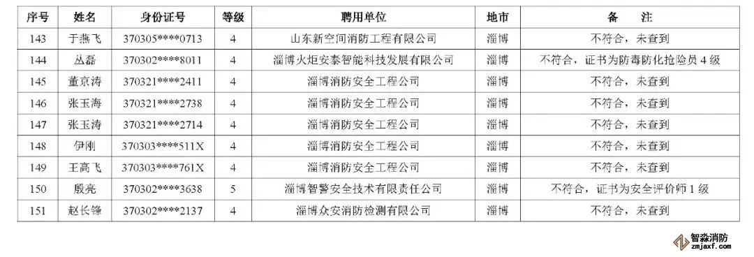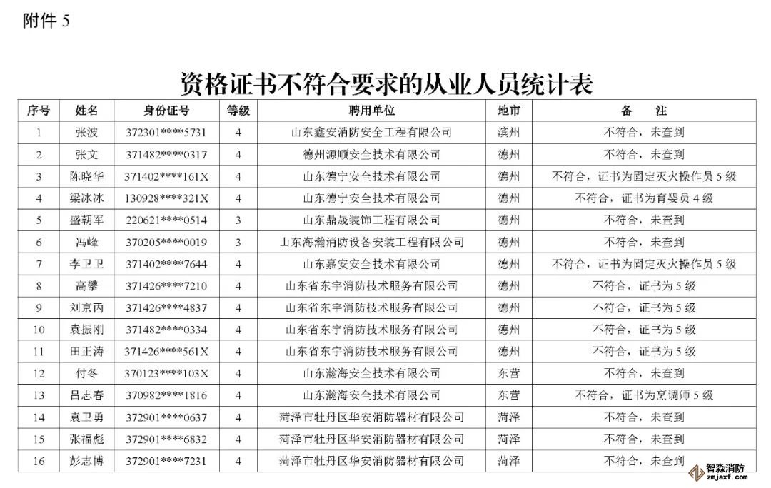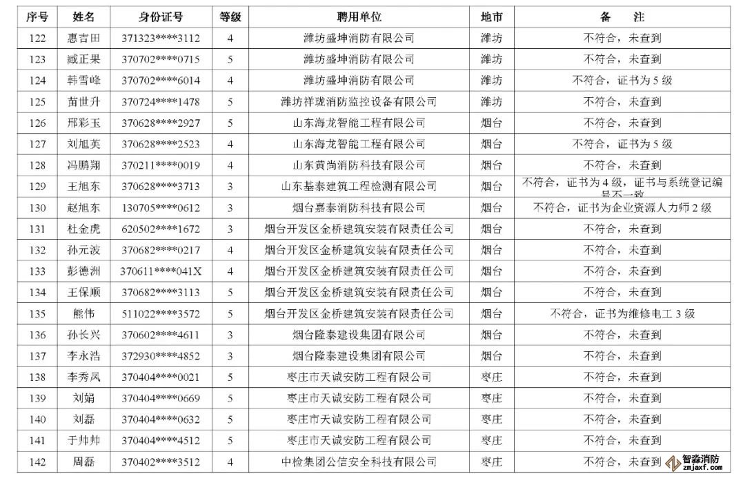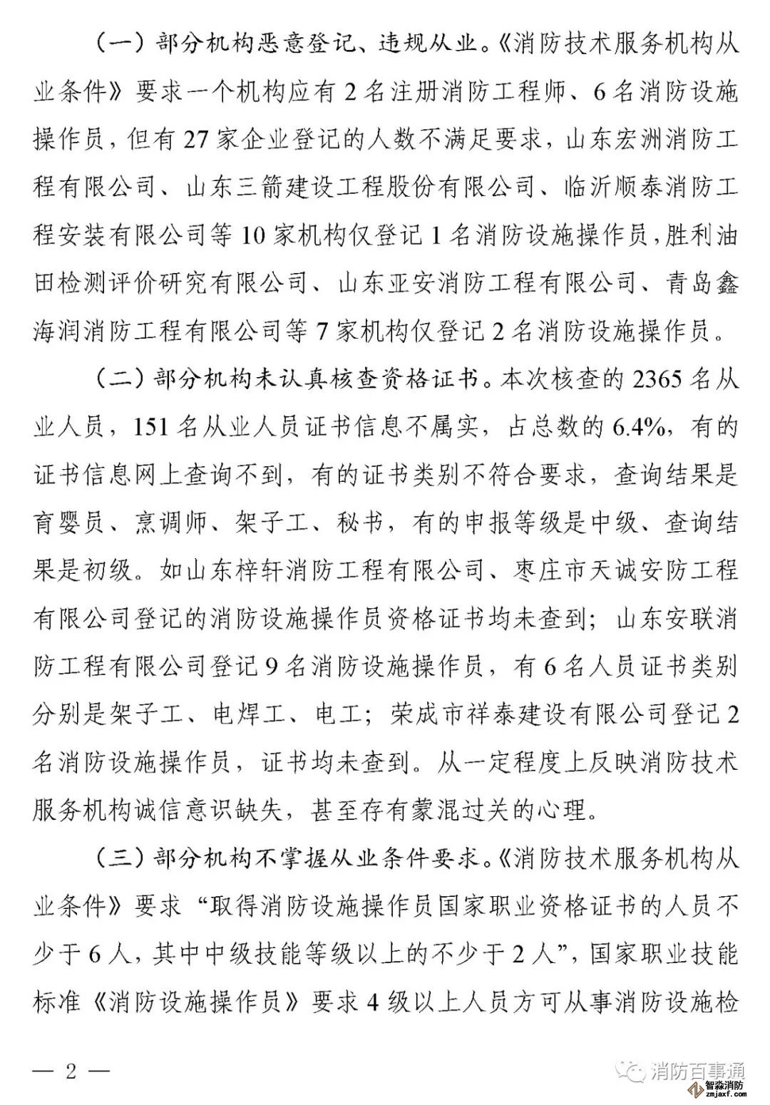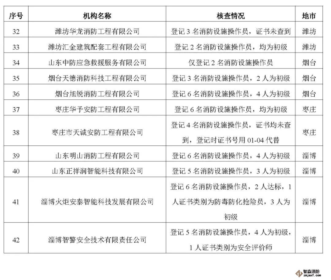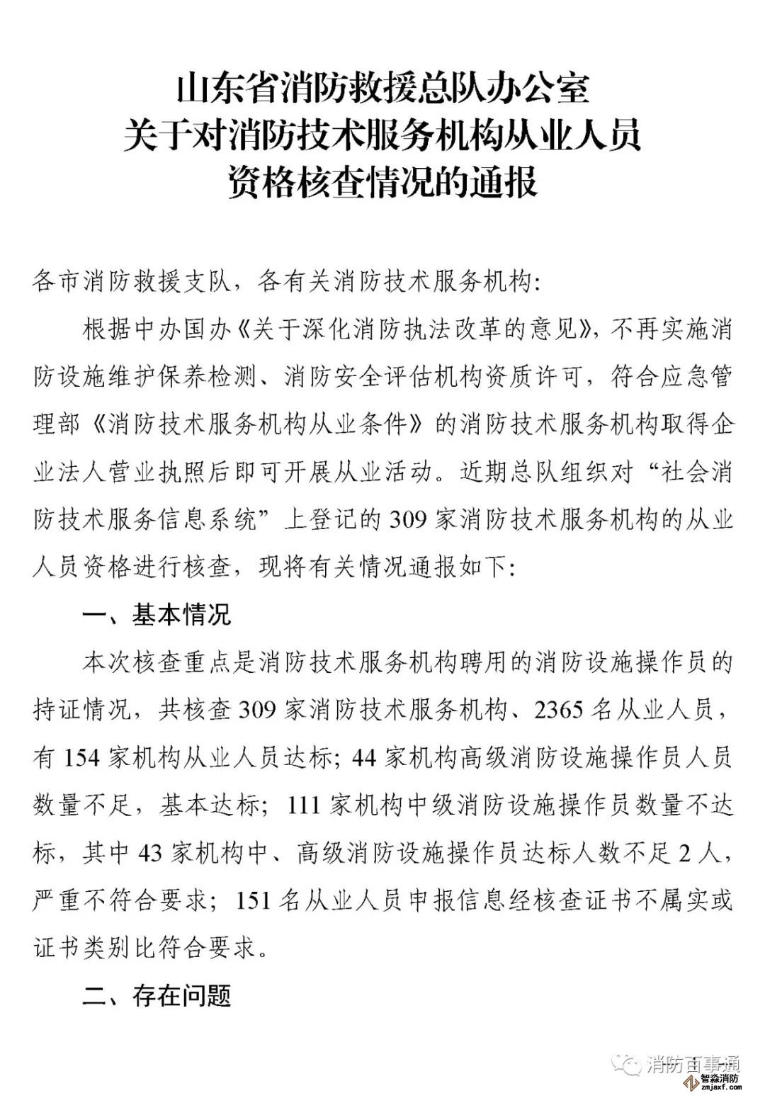 近日,山東省消防救援總隊辦公室通報了對消防技術(shù)服務機構(gòu)從業(yè)人員資格核查情況: