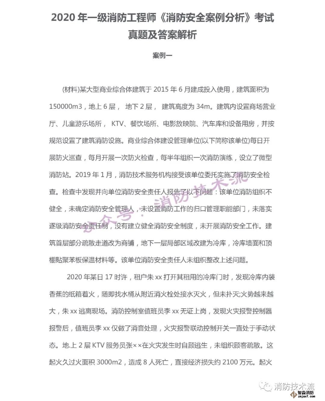 2020年一級注冊消防工程考試《消防案例分析》真題及答案解析