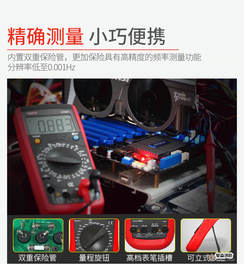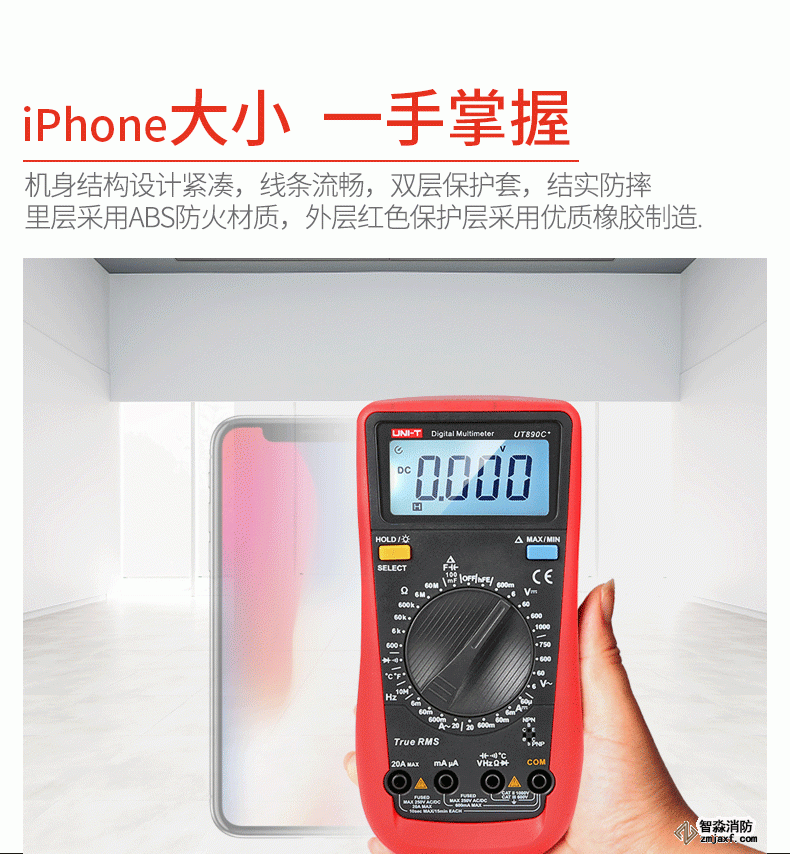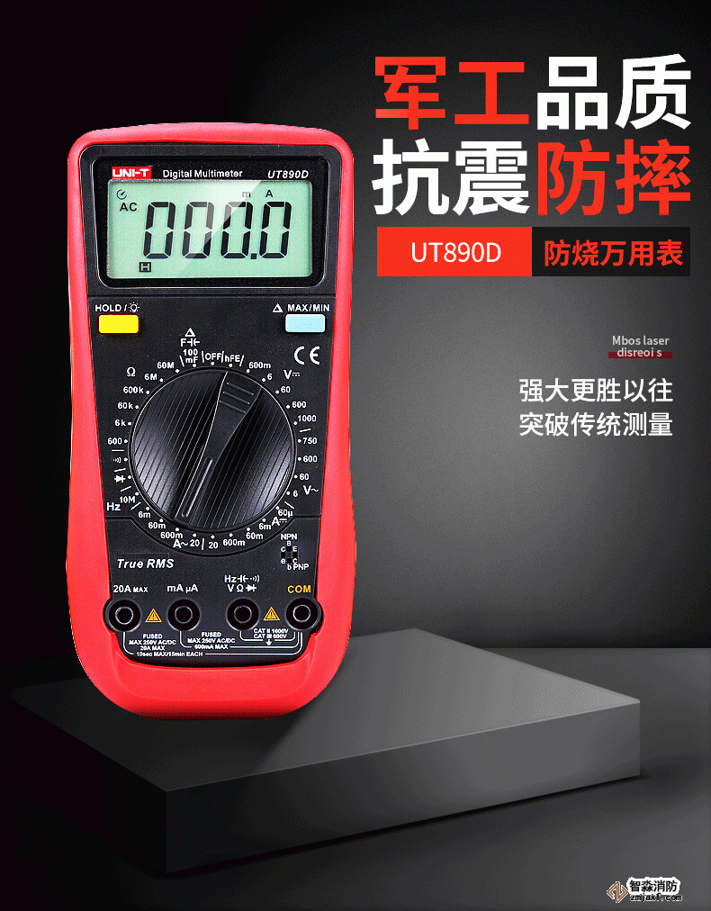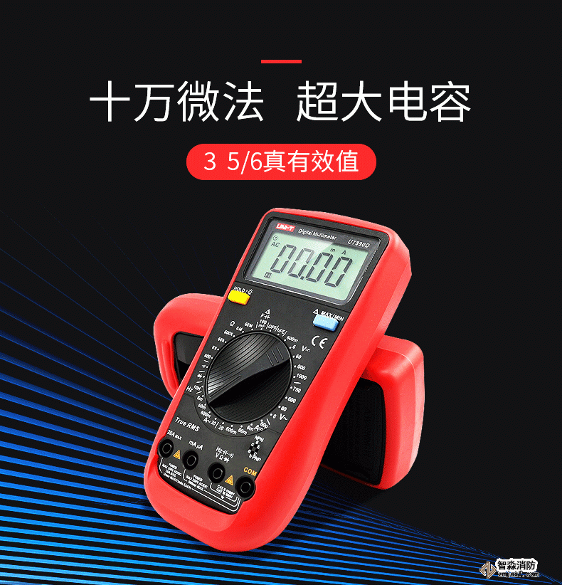 UT890系列全新一代手動量程數字萬用表。自動量程100mF大電容檔位,可快速測量音響功放,電源板等領域mF等級的大電容。該系列萬用表具有真有效值,可準確進行非正常交流信號的有效測量;全量程保護,萬用表在電阻檔測試時不會由于誤操作接入高壓而引起燒表。在電子,家電,電器維修工作中,您需要一款耐用、可靠且精確的數字萬用表。
