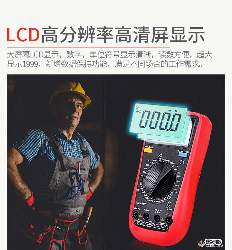 10.具有數字保持,白色LED背光燈,自動關機功